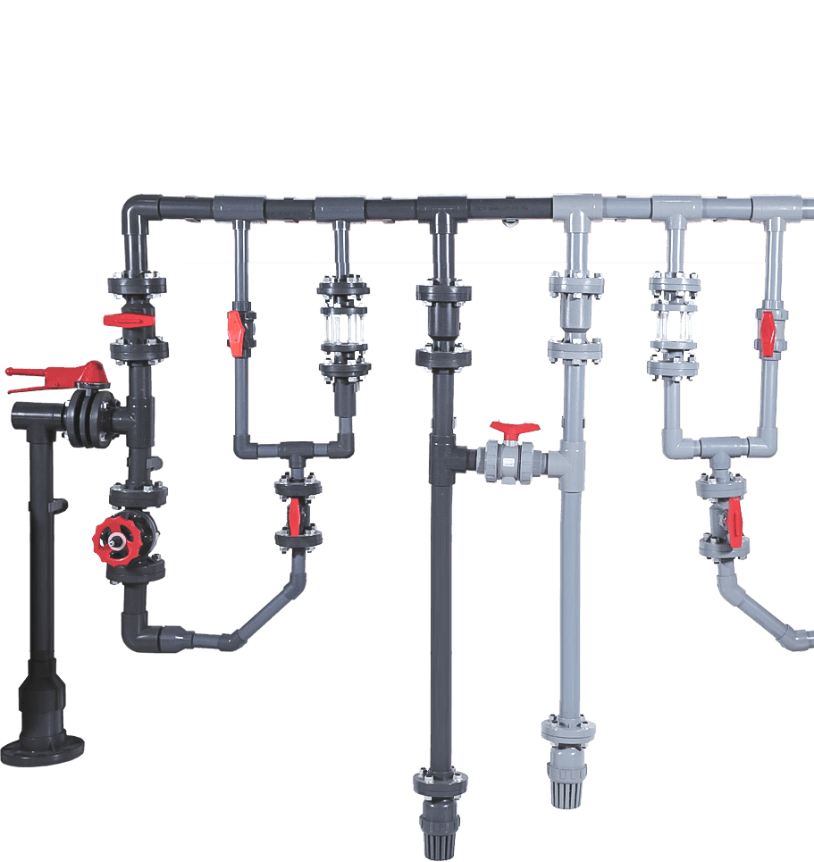 專業生產三大系列產品(閥門、管材/管件、泵)&五種材料(CPVC、UPVC、PVDF、PPH、FRPP)